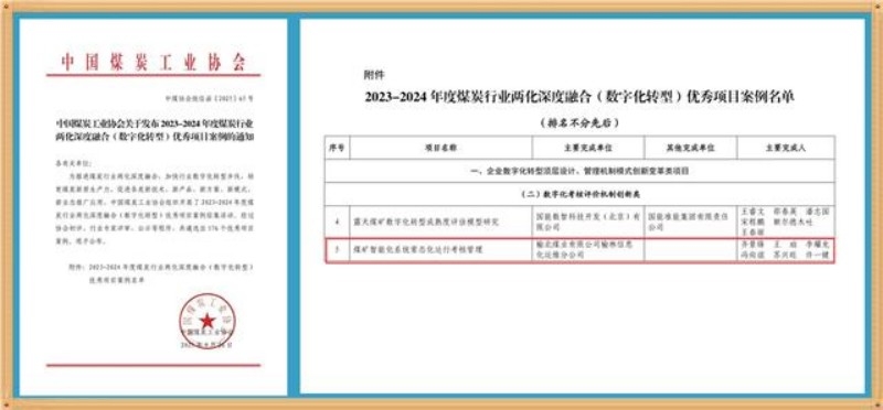 信息化运维分公司获评煤炭行业两化深度融合优秀项目案例