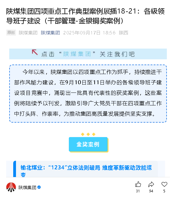 9月17日,陕西煤业监事会主席贺兵奇到中能公司开展安全生产包保调研督导。公司党委书记、董事长、总经理雷亚军,总工程师杨彪一同调研。会上,公司及中能公司汇报了2025年前三季度安全生产、经济运行情况及四季度重点工作安排,并就重大风险分析研判及管控措施落实、重要时段...